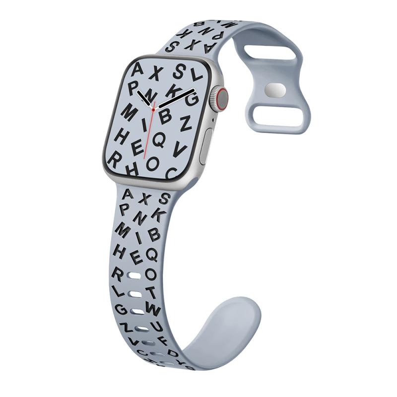 For Apple Watch Series 7 45mm English Letters Style Butterfly Buckle Silicone Watch Band(Gray Black)