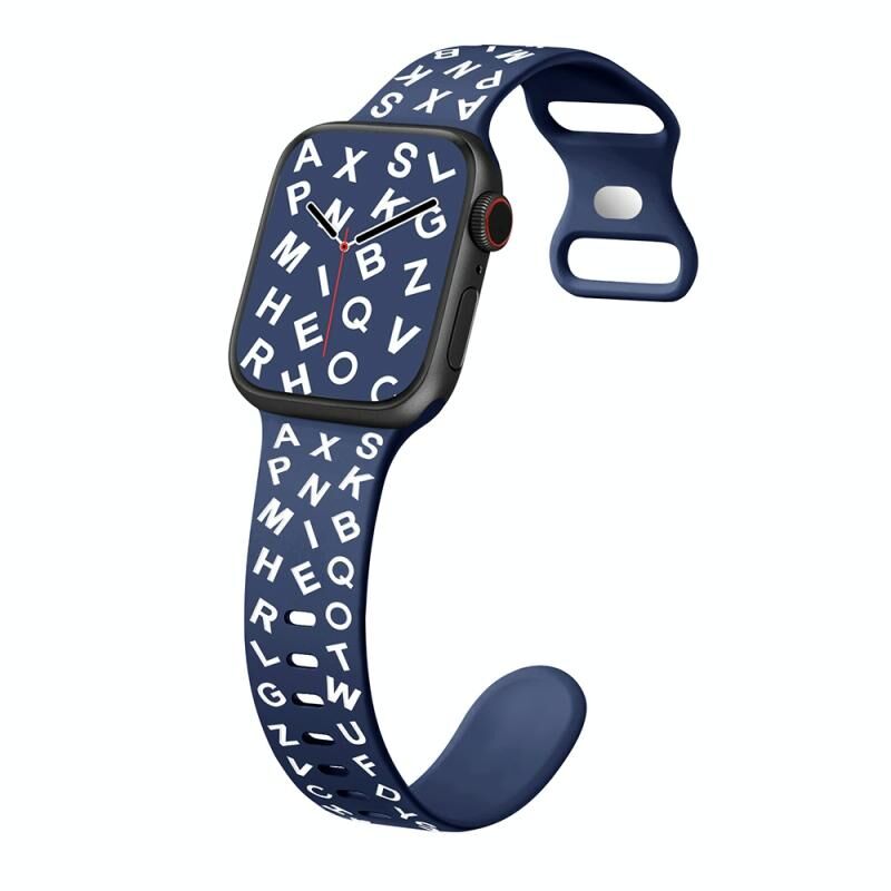 Για Apple Watch Series 7 45mm Λουράκι Σιλικόνης με Αγκράφα Πεταλούδας σε Αγγλικό Στυλ (Μπλε της νύχτας και λευκό)