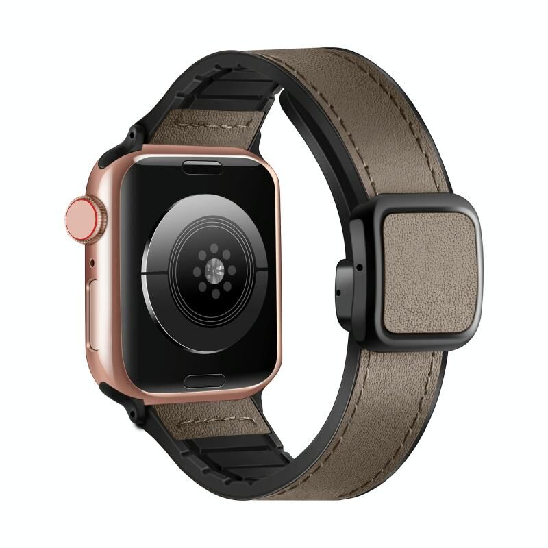 Για Apple Watch Series 7 45mm Μαγνητικό Λουράκι PU Σιλικόνης (Σκούρο Καφέ)