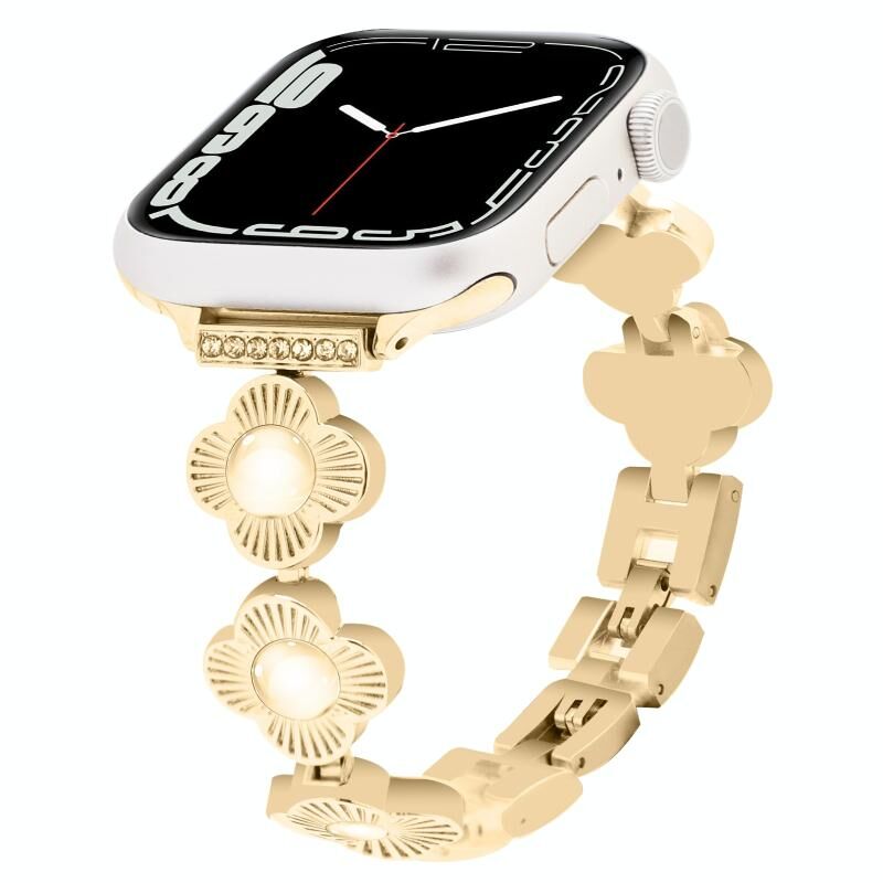 Για Apple Watch Series 7 45mm Λουρί ρολογιού από μεταλλική αλυσίδα με γρήγορη απελευθέρωση Τριφύλλι (Μαύρο)