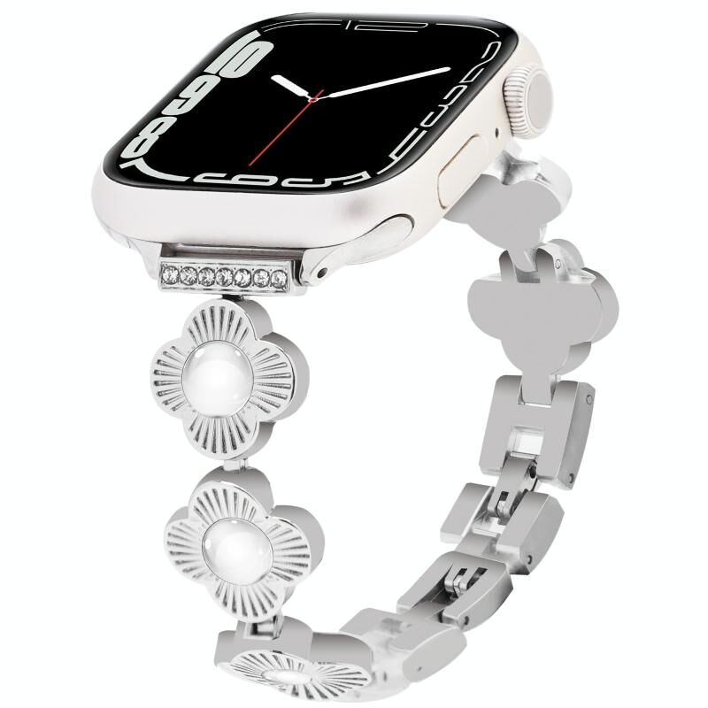 Για Apple Watch Series 7 45mm Λουρί ρολογιού από μεταλλική αλυσίδα με γρήγορη απελευθέρωση Τριφύλλι (Μαύρο)