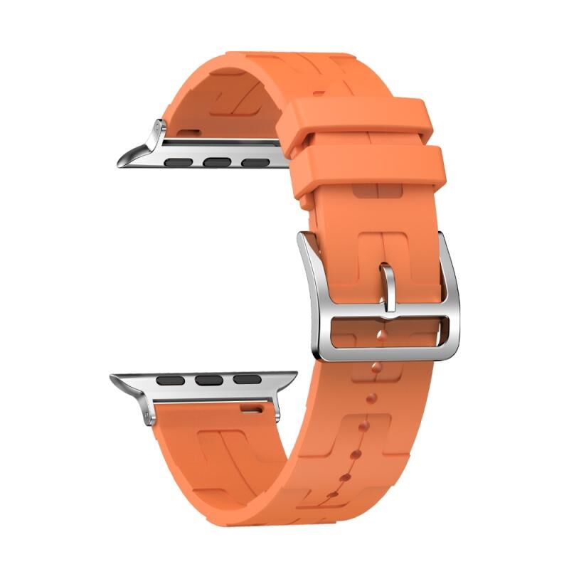 Για Apple Watch Series 7 45mm Λουρί με Απαλή Σιλικόνη και Αγκράφα Υφής H (Πορτοκαλί)