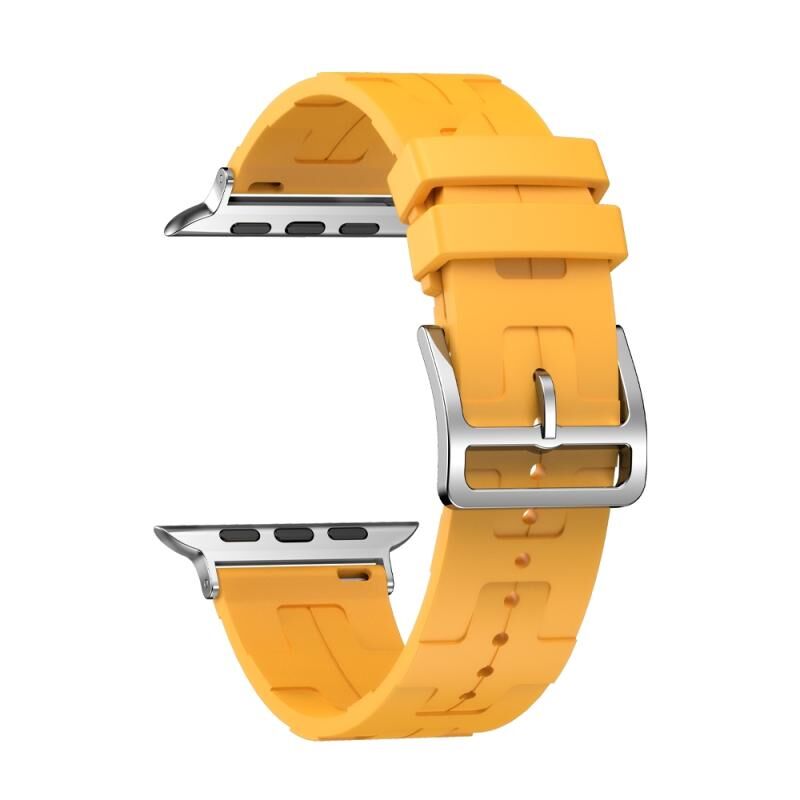 Για Apple Watch Series 7 45mm Λουρί με Απαλή Σιλικόνη και Αγκράφα Υφής H (Κίτρινο)