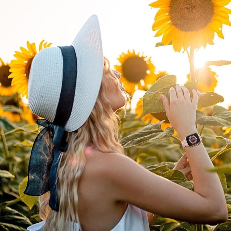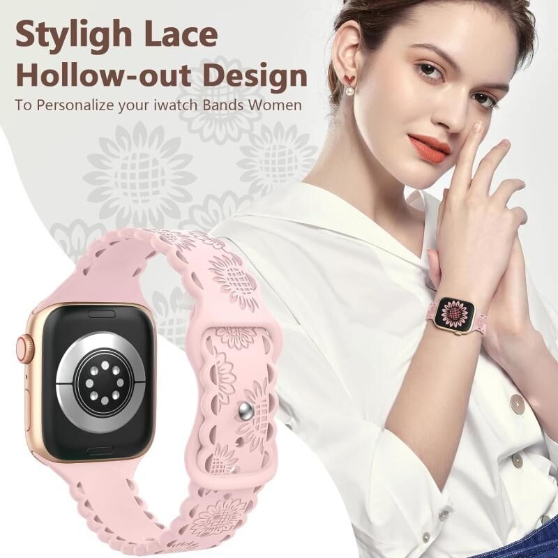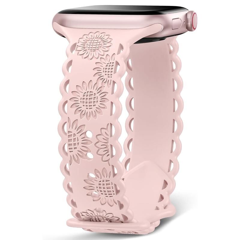 Για Apple Watch Series 7 45mm Λουρί Σιλικόνης με Δαντέλα και Χαραγμένο Ηλιάνθου (Μαύρο)