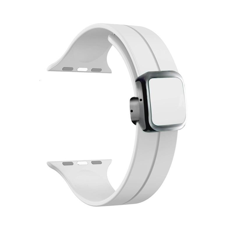 For Apple Watch Series 7 45mm Magnetic Square Buckle Silicone Watch Band(White)