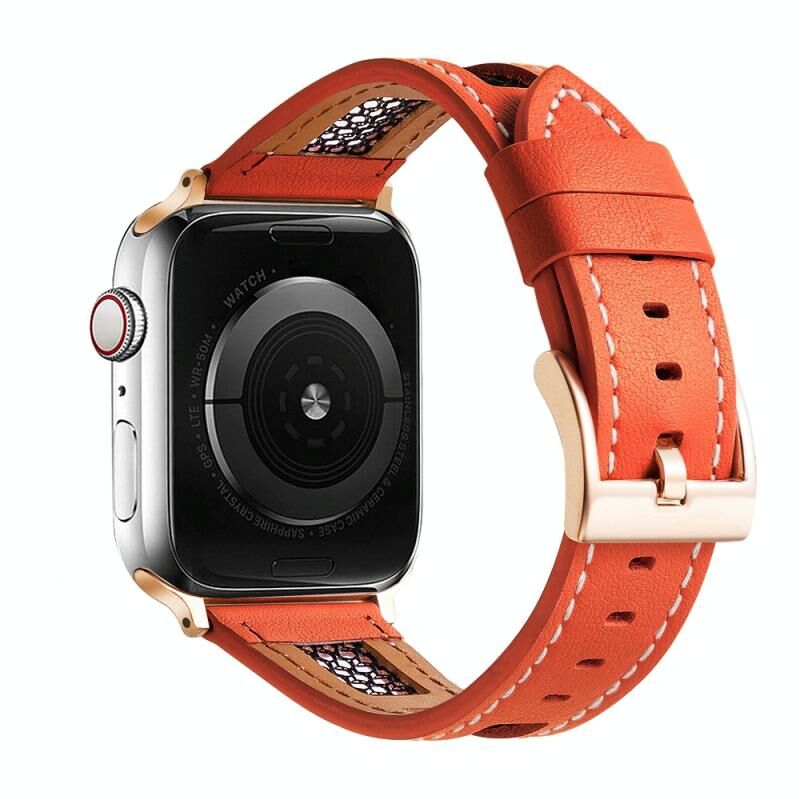 Για Apple Watch Series 7 45mm Μπρασλέτα από δέρμα μοσχαριού πλέγματος (Πορτοκαλί)