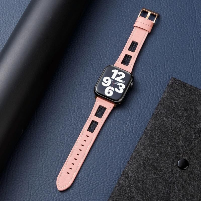 Για Apple Watch Series 7 45mm Μπρασλέτα από δέρμα μοσχαριού πλέγματος (ρόζ)