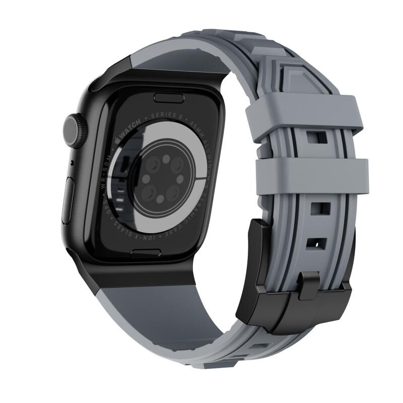 Για Apple Watch Series 7 45mm Μεταλλικός Συνδετήρας Λουράκι Σιλικόνης (Μαύρο + Αγκράφα Τιτανίου)