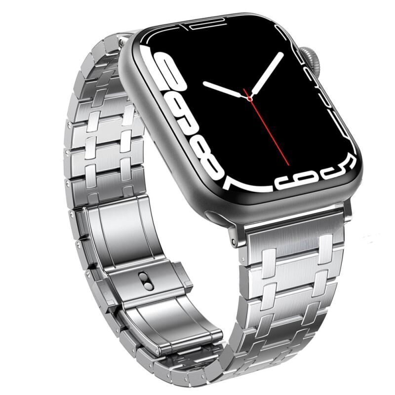 Για Apple Watch Series 7 45mm Τροποποιημένο Δερμάτινο Λουράκι Oak AP από Κράμα Τιτανίου (Ασημί)