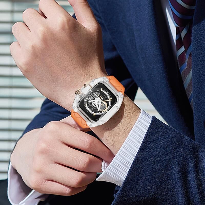 Θήκη ρολογιού για Apple Watch Series 7 45mm, τροποποιημένη υβριδική PC TPU με λουρί (Μαύρο Διαφανές Μαύρο)