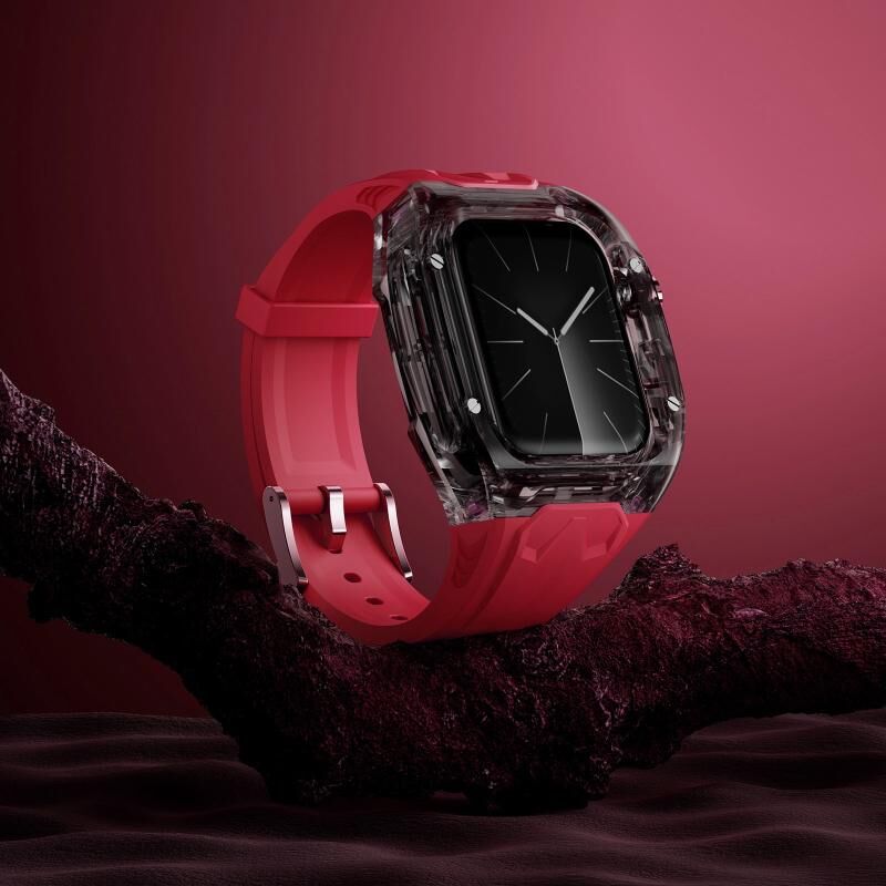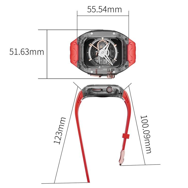 Θήκη ρολογιού για Apple Watch Series 7 45mm, τροποποιημένη υβριδική PC TPU με λουρί (Μαύρο Διαφανές Μαύρο)