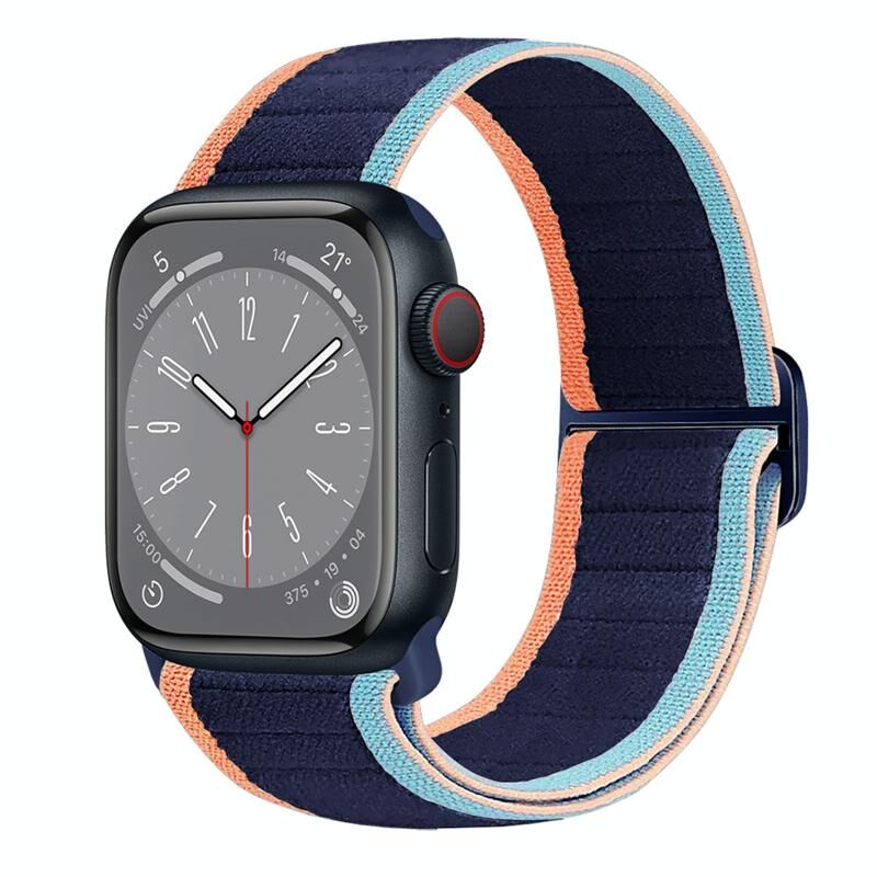 Για Apple Watch Series 7 45mm Λουρί ρολογιού από νάιλον με ελαστικό κούμπωμα (Μαύρο Πορτοκαλί)
