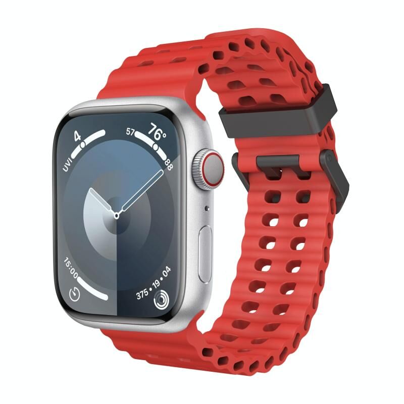 Για Apple Watch Series 7 45mm Λουρί Σιλικόνης Ocean με Διπλή Σειρά Τρυπών (Κόκκινο)