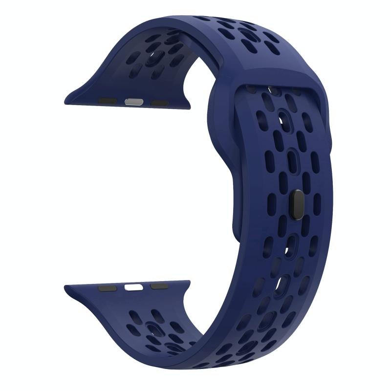 For Apple Watch Series 7 45mm Oval Holes Fluororubber Watch Band(Midnight Blue)