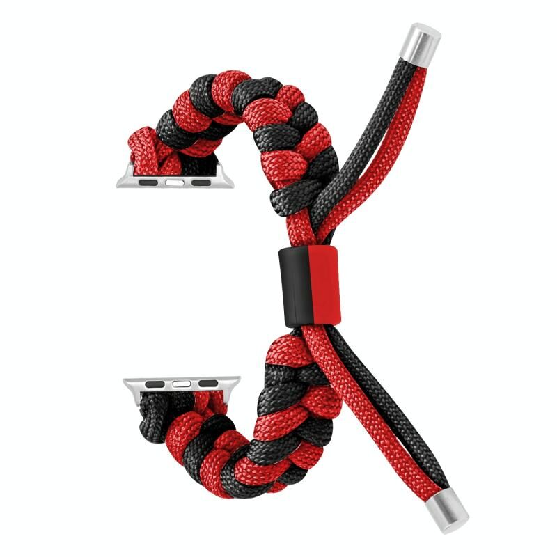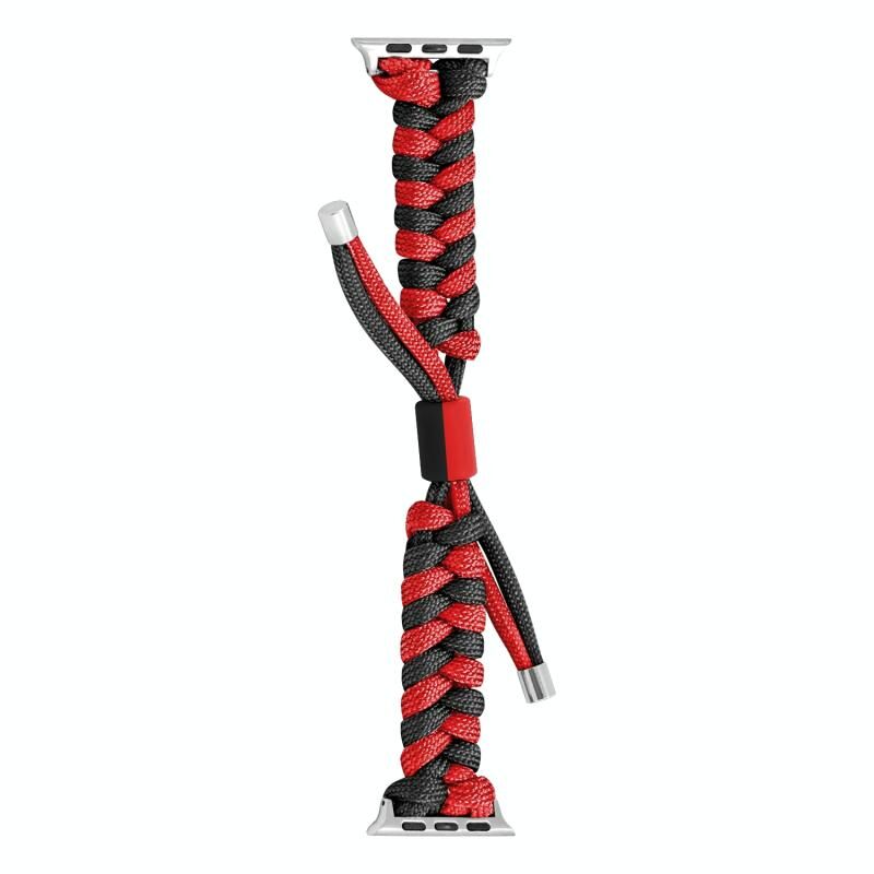Για Apple Watch Series 7 45mm Λουρί Παρακολούθησης με χάντρες σιλικόνης πλεγμένο με κορδόνι Paracord σε στυλ ουράς ψαριού (Μαύρο Κόκκινο)