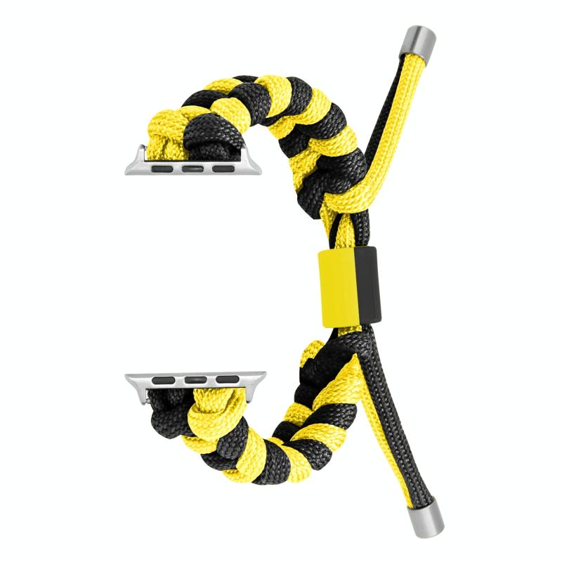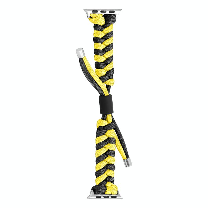For Apple Watch Series 7 45mm Paracord Fishtail Braided Silicone Bead Watch Band(Black Yellow)