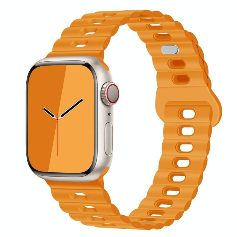 For Apple Watch Series 7 45mm Reverse Buckle Breathable Silicone Watch Band(California Poppy)