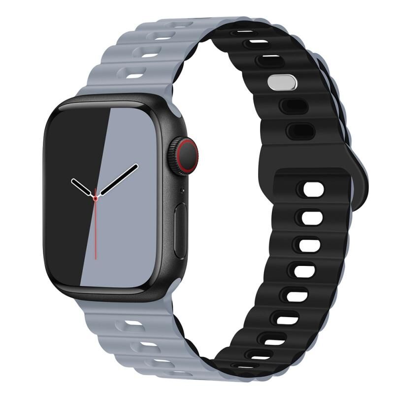 Για Apple Watch Series 7 45mm Λουρί Σιλικόνης με Αναστρέψιμη Αγκράφα και Δυνατότητα Αναπνοής (Μαύρο Γκρι Οψιδιανού)