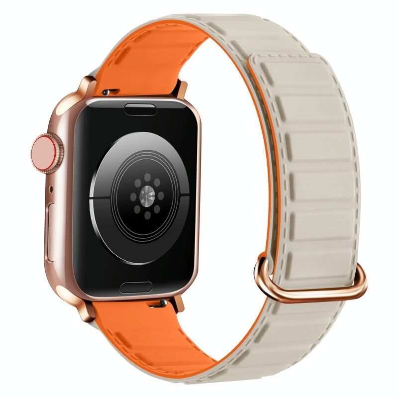 For Apple Watch Series 7 45mm Reverse Buckle Magnetic Silicone Watch Band(Rose Buckle Starlight Orange)