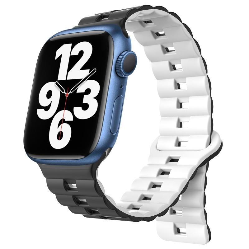 Για Apple Watch Series 7 45mm Λουρί Σιλικόνης με Μαγνητικό Κούμπωμα Αντίστροφης Πόρπης Δύο Χρωμάτων (Γκρι+Πορτοκαλί)