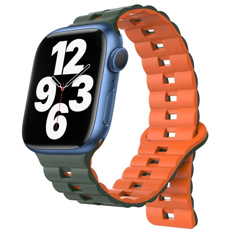 Για Apple Watch Series 7 45mm Λουρί Σιλικόνης με Μαγνητικό Κούμπωμα Αντίστροφης Πόρπης Δύο Χρωμάτων (Γκρι+Πορτοκαλί)