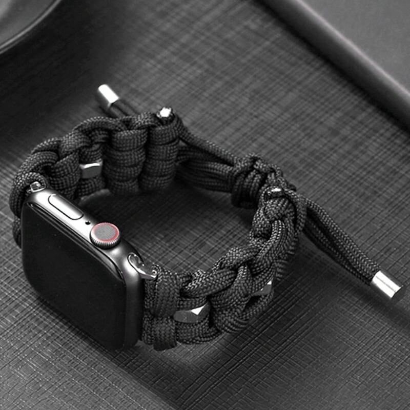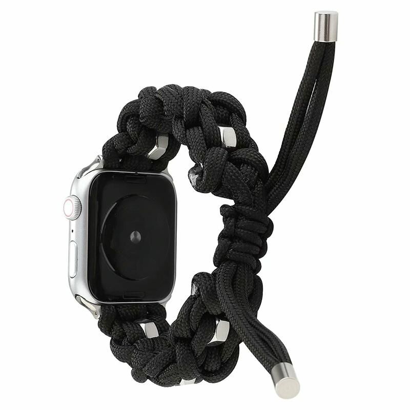Για Apple Watch Series 7 45mm Βίδα Γκάιδα Πλεκτή Παρακορδική Ιμάντα Ρολογιού (Μαύρο)