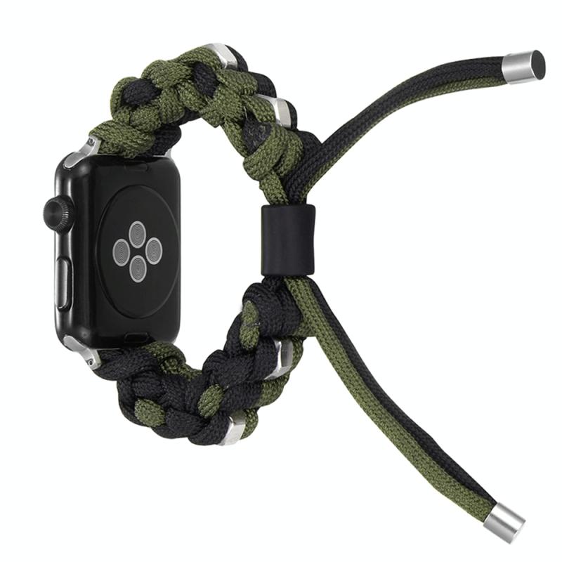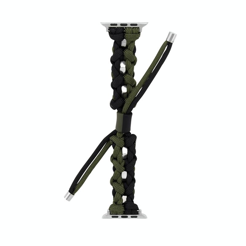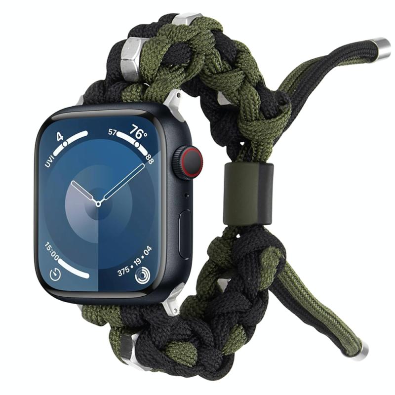 For Apple Watch Series 7 45mm Screw Nut Dual-Color Braided Paracord Watch Band(Black Green)