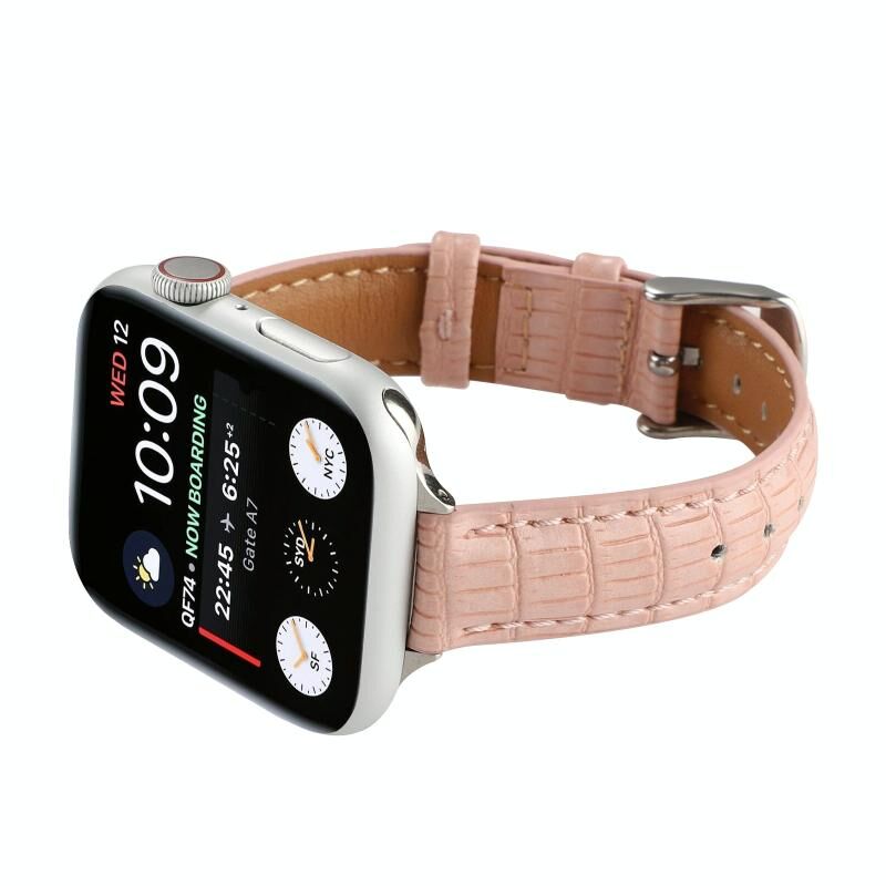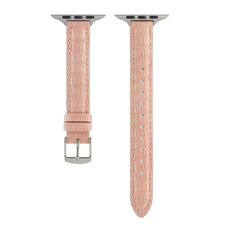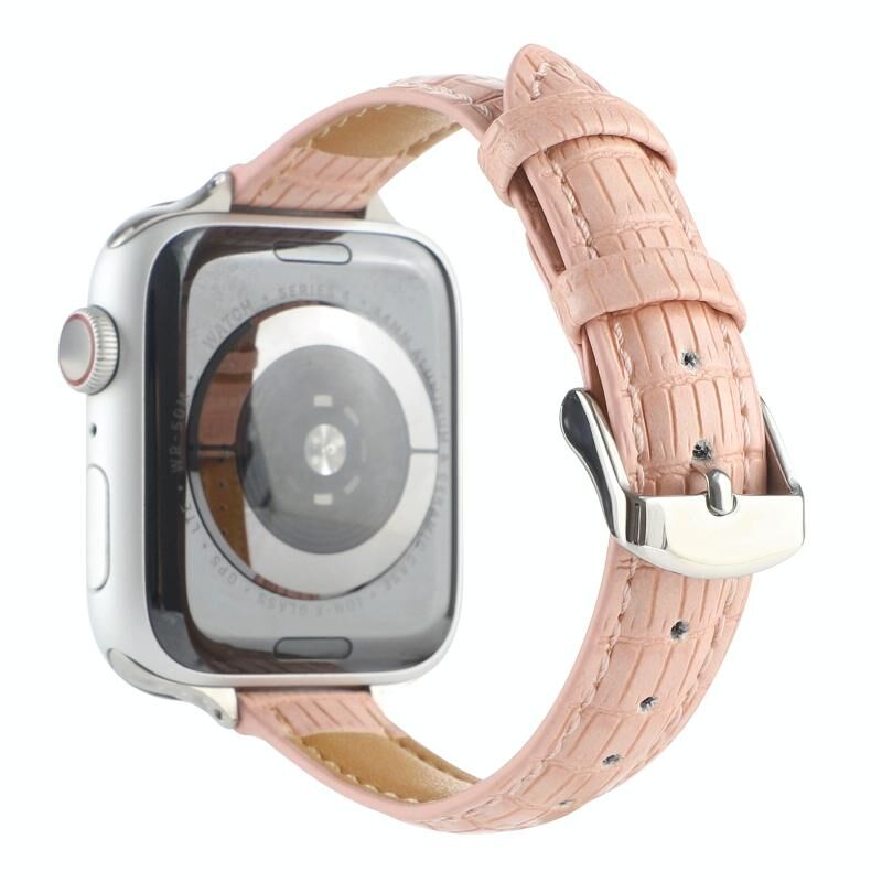 Για Apple Watch Series 7 45mm Λεπτό Δερμάτινο Λουρί Κροκόδειλου (ρόζ)