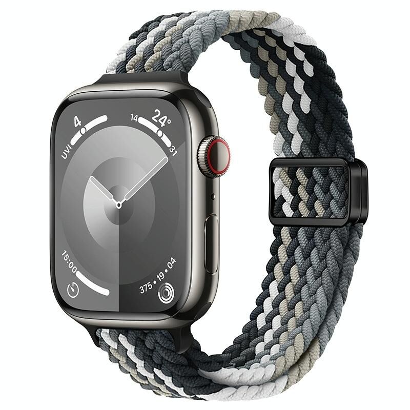 Για Apple Watch Series 7 45mm Λεπτή Μαγνητική Αγκράφα Νάιλον Πλεκτή Ζώνη Ρολογιού (Σοκολάτα)