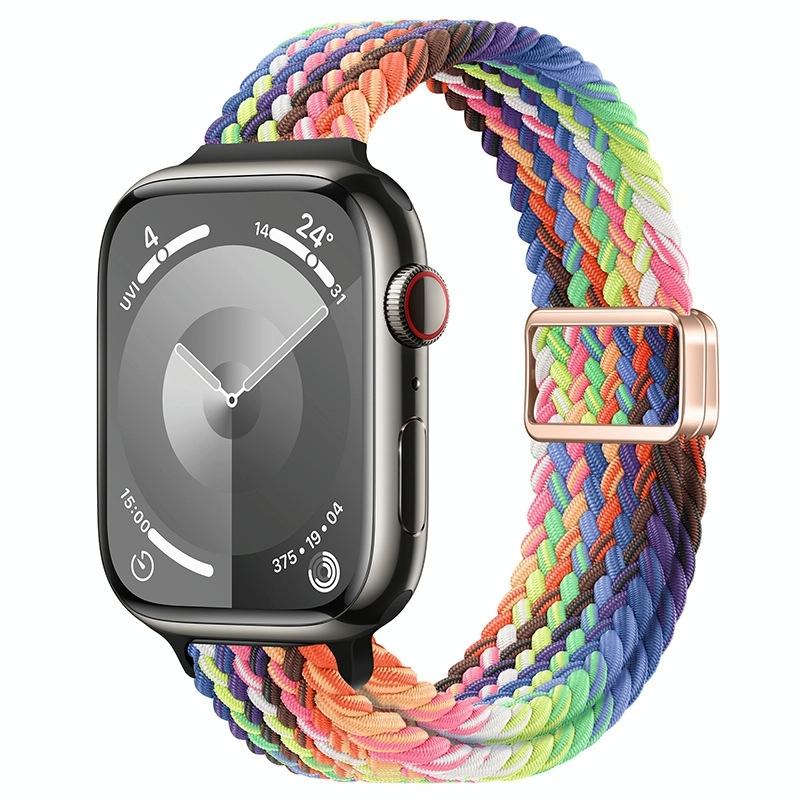 Για Apple Watch Series 7 45mm Λεπτή Μαγνητική Αγκράφα Νάιλον Πλεκτή Ζώνη Ρολογιού (Λαμπερό Νέο Ουράνιο Τόξο)