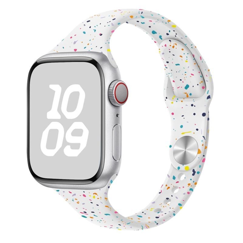 For Apple Watch Series 7 45mm Slim Style Colorful Dots Silicone Watch Band(White)