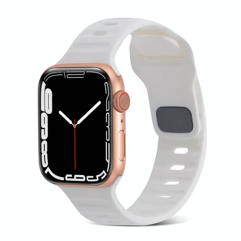 Για Apple Watch Series 7 45mm Λουρί Σιλικόνης με Αγκράφα Τετράγωνου Σχήματος Ρίγες (Λευκό)