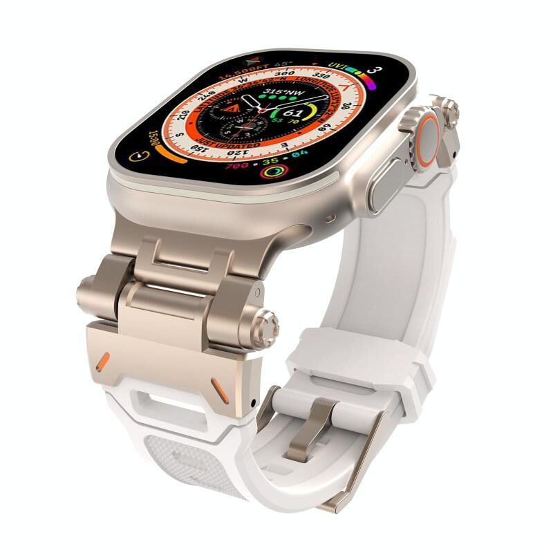 Για Apple Watch Series 7 45mm Συνδετήρας από Ανοξείδωτο Ατσάλι Λουράκι Ρολογιού TPU (Τιτάνιο Αστρόφωτο)