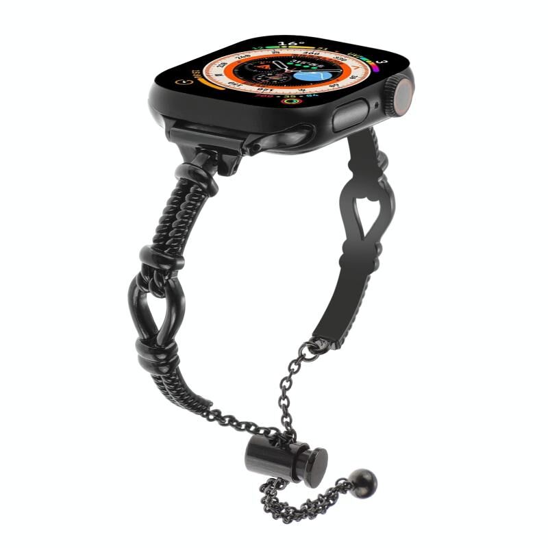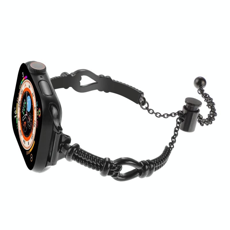 Για Apple Watch Series 7 45mm Μεταλλικό Μπρασελέ Twist με Αλυσίδα (Μαύρο)