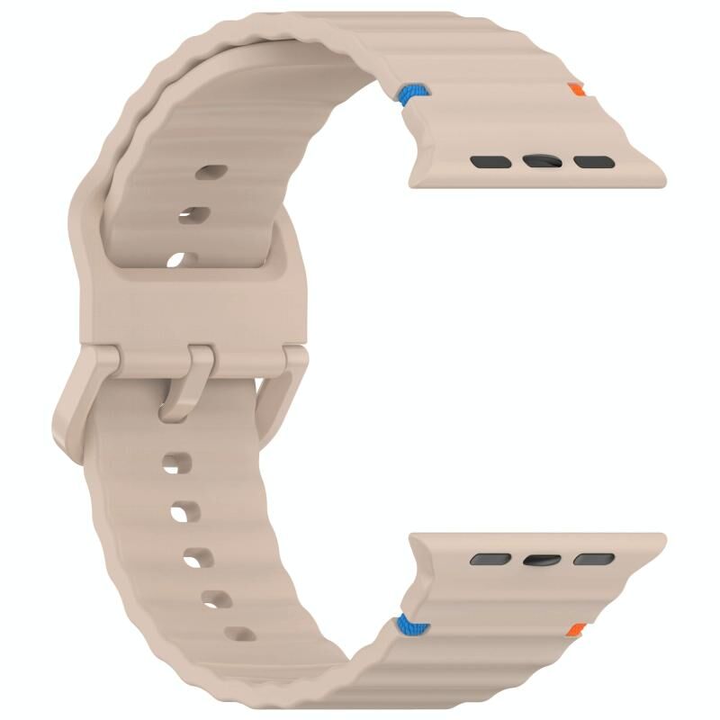 Για Apple Watch Series 7 45mm Λουρί Σιλικόνης με Ραφή σε Κυματιστή Υφή (Χρώμα Γαλακτώδες Τσάι)