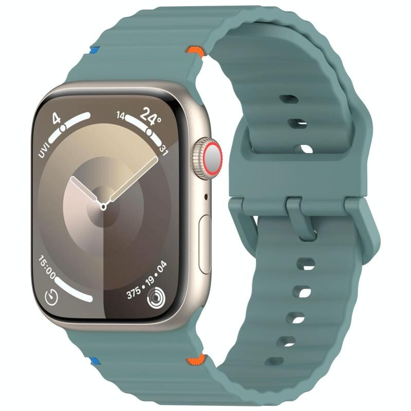 Λουράκι Apple Watch Series 7 45mm από σιλικόνη με κυματιστή υφή και ραφή (Πράσινο πεύκου)