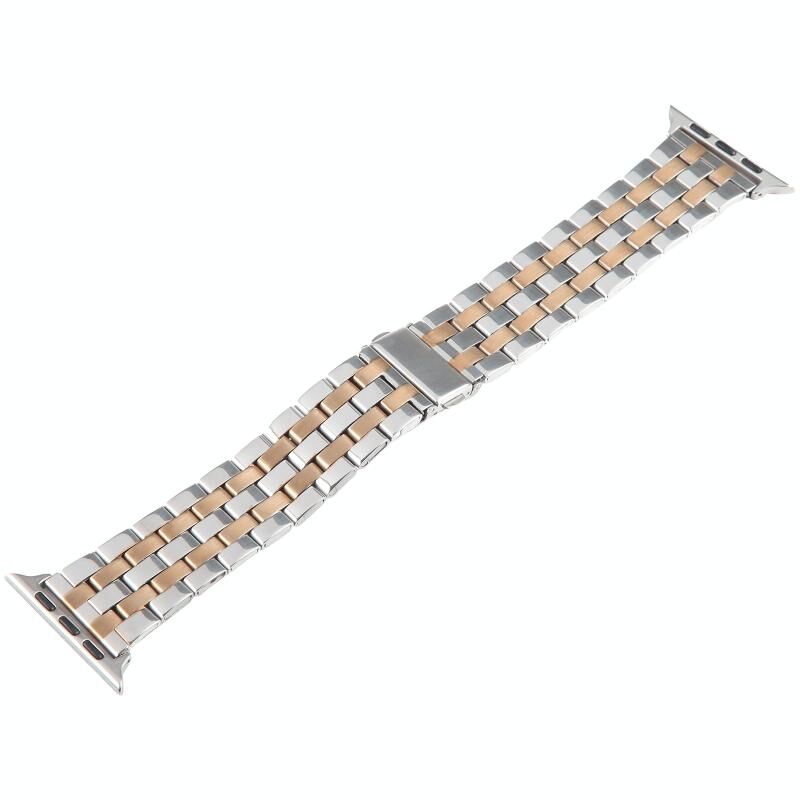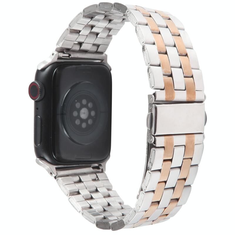 Για Apple Watch Series 8 41mm 22mm Εξαιρετικά λεπτό λουρί ρολογιού από ανοξείδωτο ατσάλι με πέντε χάντρες (Ασημί Ροζ Χρυσό)