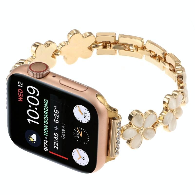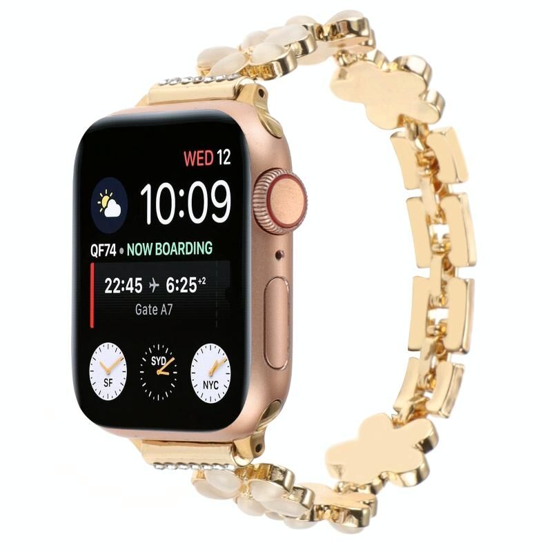 Για Apple Watch Series 8 41mm Λουρί ρολογιού με αλυσίδα από κράμα ψευδαργύρου με 5 πέταλα λουλουδιού (Χρυσός)