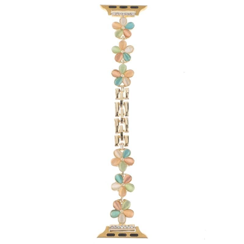 Για Apple Watch Series 8 41mm Λουρί ρολογιού με αλυσίδα από κράμα ψευδαργύρου με 5 πέταλα λουλουδιού (Μαύρο)