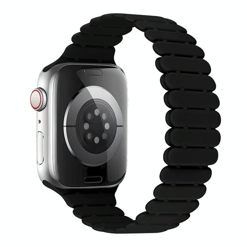 Για Apple Watch Series 8 41mm Λουρί Σιλικόνης με Μαγνητικό Κούμπωμα από Μπαμπού (Μαύρο)