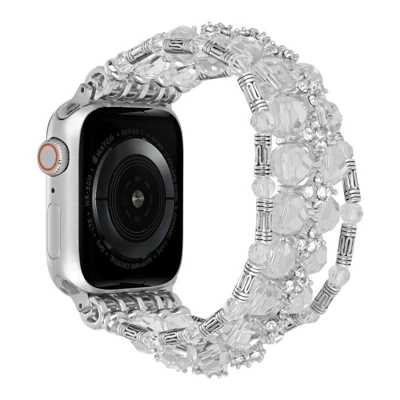 For Apple Watch Series 8 41mm Beaded Diamond Bracelet Watch Band(White)