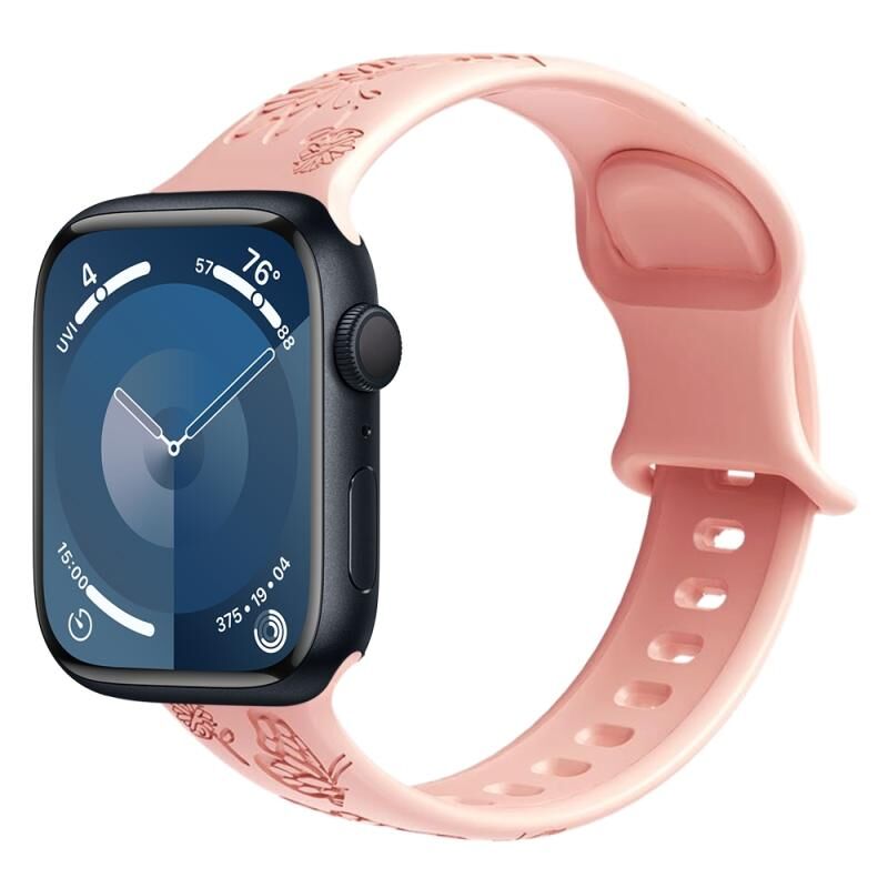 Για Apple Watch Series 8 41mm Λουρί Σιλικόνης με ανάγλυφο σχέδιο πεταλούδας και λουλουδιών (Ρετρό Ρόδινο)