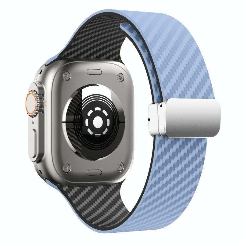 Για Apple Watch Series 8 41mm Λουρί ρολογιού από ανθρακονήματα με μαγνητική αγκράφα ασημί (Ανοιχτό Γαλάζιο Μαύρο)