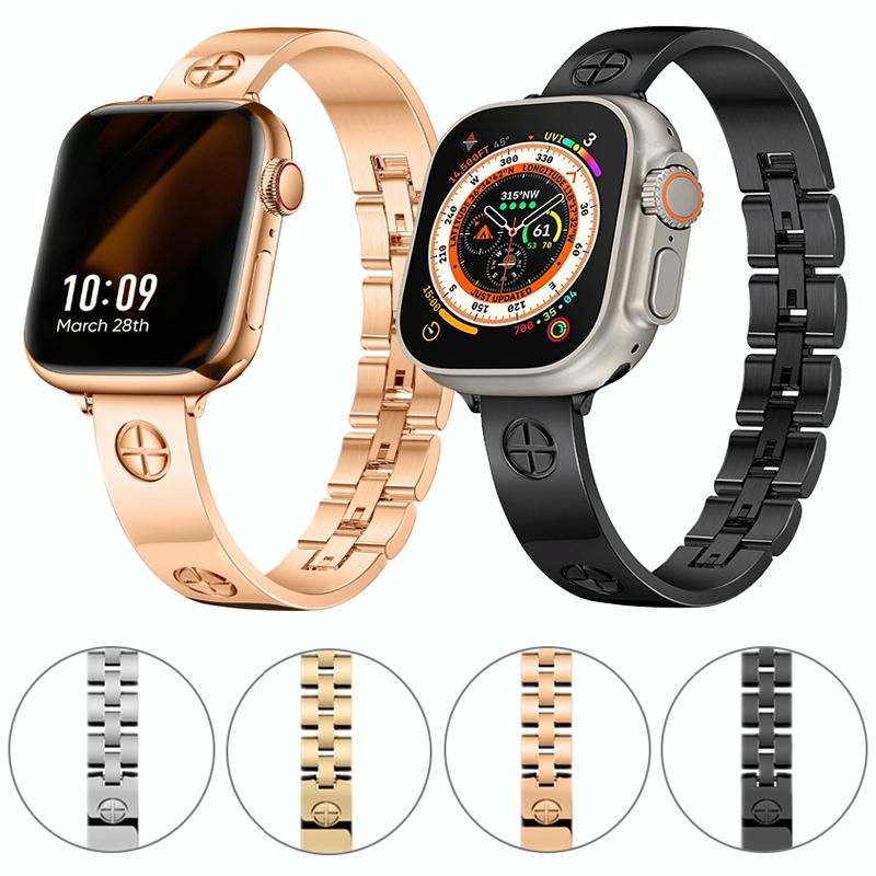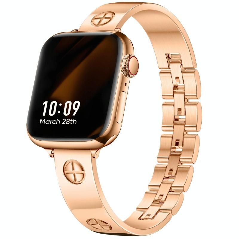 Για Apple Watch Series 8 41mm Σταυρωτό Βραχιόλι Ανοξείδωτο Ατσάλινο Λουράκι Ρολογιού (Ροζ χρυσός)