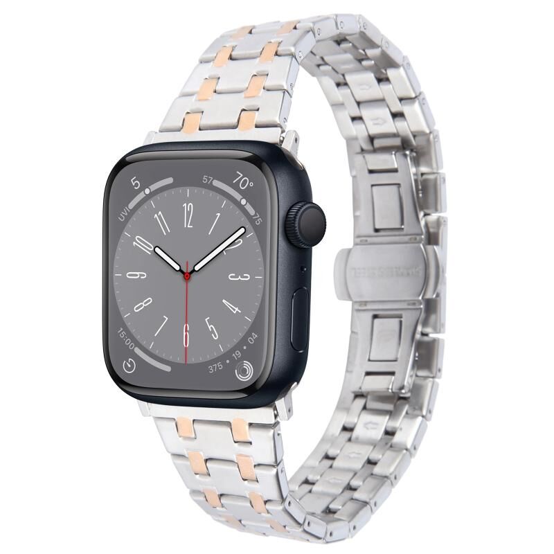 Για Apple Watch Series 8 41mm Διπλό λουρί ρολογιού από ανοξείδωτο ατσάλι (Ασημί Ροζ Χρυσό)