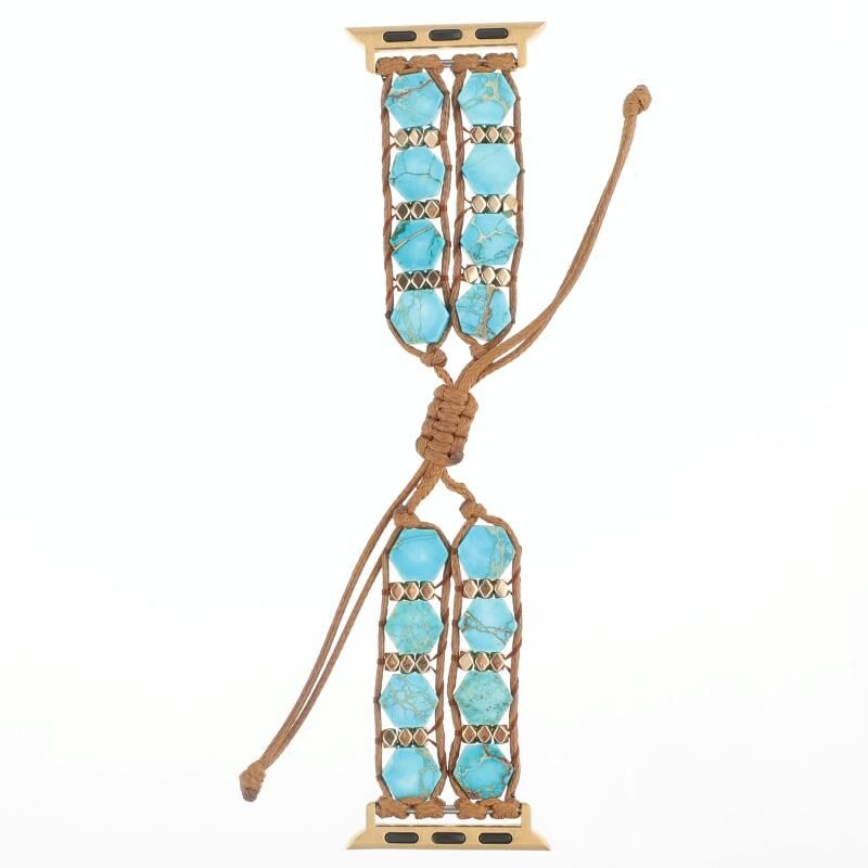 Για Apple Watch Series 8 41mm Λουράκι ρολογιού με αλυσίδα κορδονιού και εξαγωνικά πετράδια (Μπλε)