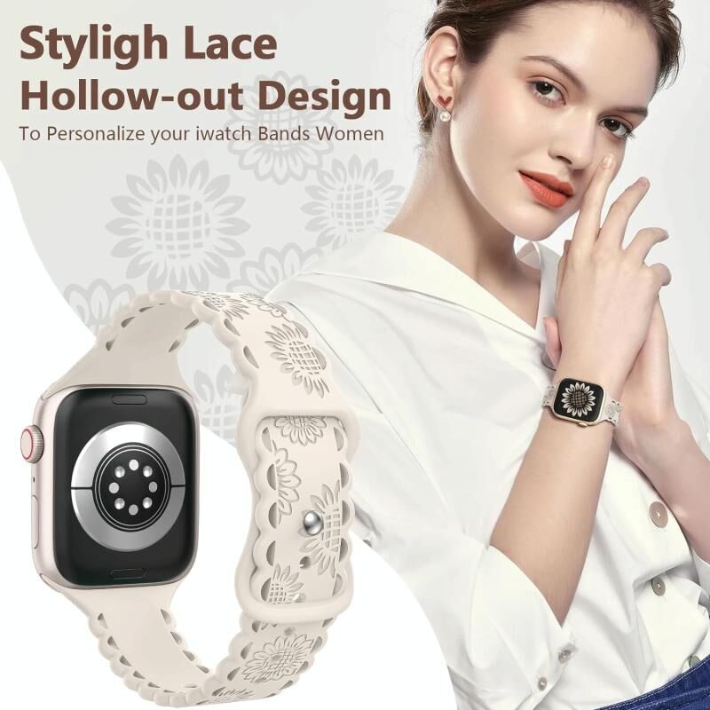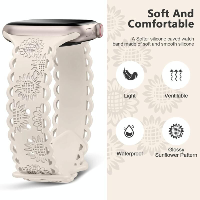 Για Apple Watch Series 8 41mm Λουρί Σιλικόνης με Δαντέλα και Χαραγμένο Ηλιάνθου (Starlight)