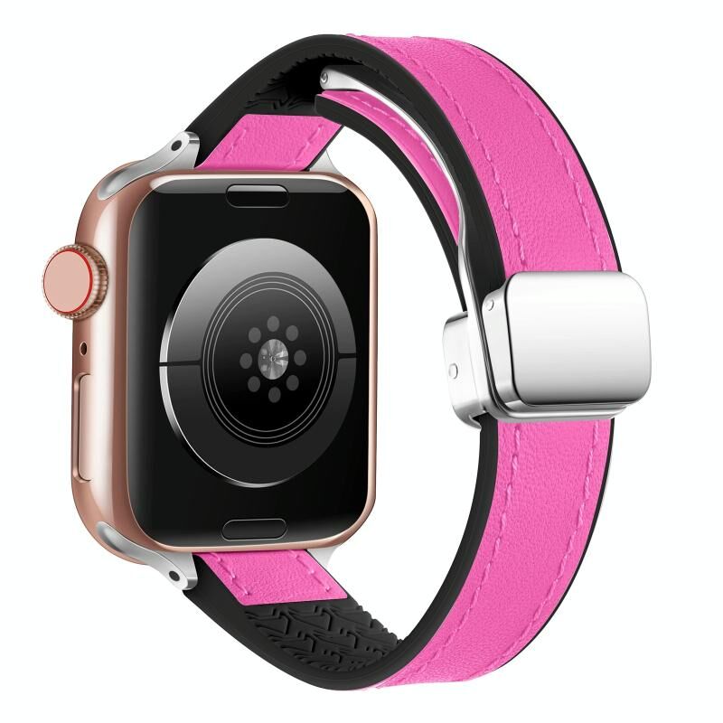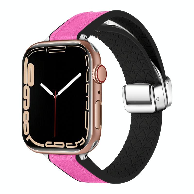 Για Apple Watch Series 8 41mm Μαγνητικό Δερμάτινο Λουράκι με Σιλικόνη (Κόκκινο Ρόδι)