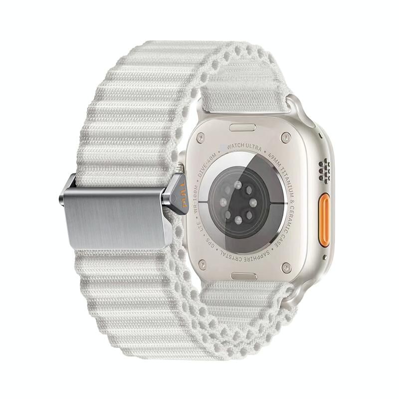 Για Apple Watch Series 8 41mm Μαγνητική Αγκράφα Εκτός Δρόμου Πλεκτή Νάιλον Λουρί (Λευκό)