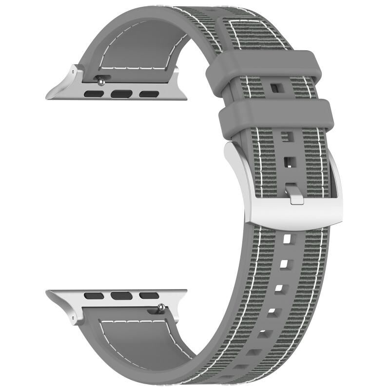 Για Apple Watch Series 8 41mm Επίσημη Αγκράφα Υβριδική Νάιλον Πλεξούδα Λουράκι Σιλικόνης (Γκρι)